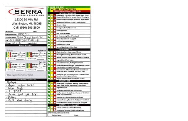 18 ALUMINUM WHEELS, FWD, FRONT HEATED SEATS, LEATHER WRAPPED STEERING WHEEL W/ MOUNTED CONTROLS, KEYLESS ENTRY, REMOTE START, Bluetooth® CAPABLE, WIFI CAPABLE, BOSE SOUND SYSTEM, HEATED DOOR MIRRORS, HANDS FREE POWER LIFTGATE, UNIVERSAL HOME REMOTE, REAR VISION CAMERA, TRACTION CONTROL, BRAKE ASSIST, 18 x 7.5 Machined Aluminum Wheels, Alloy wheels. Priced below KBB Fair Purchase Price!Tungsten Metallic 2016 Chevrolet Traverse 2LT 4D Sport Utility 3.6L V6 SIDI 6-Speed Automatic FWDOdometer is 40609 miles below market average!PLEASE CALL OR EMAIL OUR INTERNET TEAM TODAY FOR MORE INFORMATION OR VISIT DRIVESERRA.COM FOR MORE INFORMATION AND TO SEE OUR COMPLETE SELECTION OF USED VEHICLE INVENTORY.Reviews:* Smooth ride even when the road isn't; can accommodate up to eight passengers; plenty of cargo space behind the third row; peace of mind that comes with top safety scores. Source: Edmunds