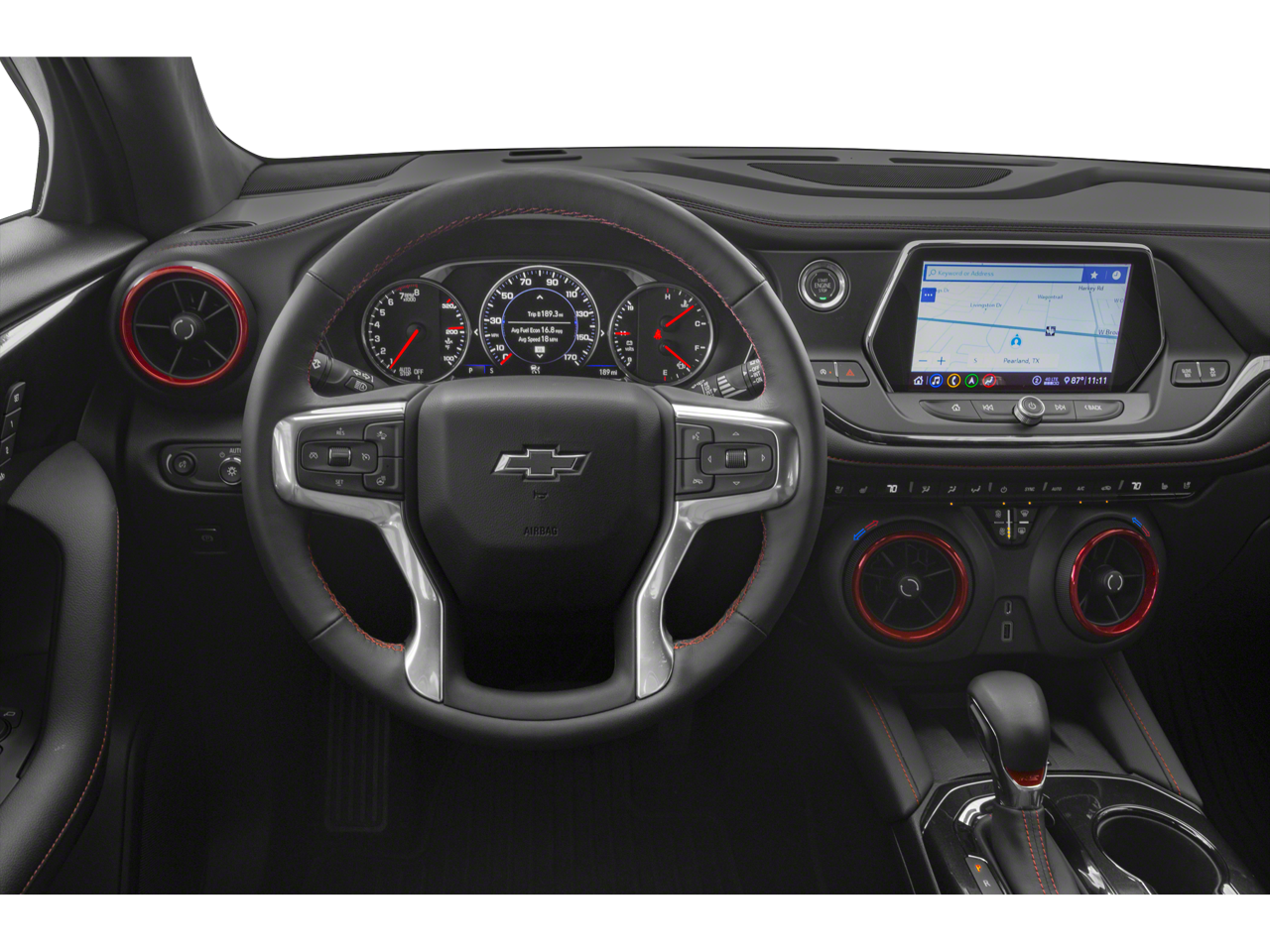 Inside, the Blazer RS pampers you with heated and ventilated front seats, a heated steering wheel, and a power tilt and telescoping steering column for a customized driving position. The Rear Camera Mirror and HD Surround Vision provide exceptional visibility, while the Safety Alert Seat helps keep you aware of your surroundings.
